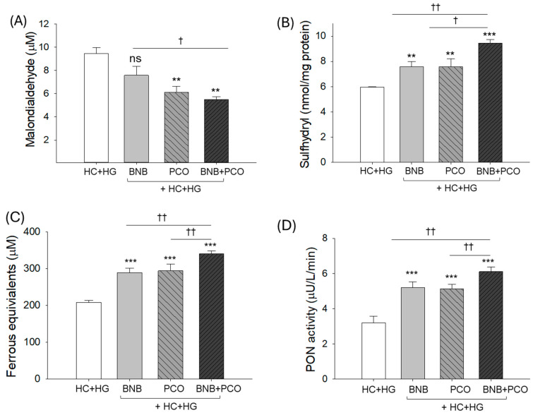Comparison of oxidative variables and antioxidant abilities in zebrafish plasma after 6 weeks of consumption of banaba (BNB, 0.1%