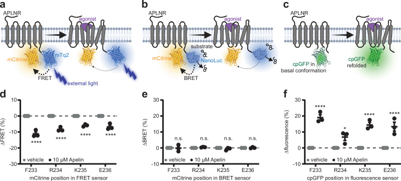 Schematic illustration of the APLNR conformational biosensors design based on FRET (