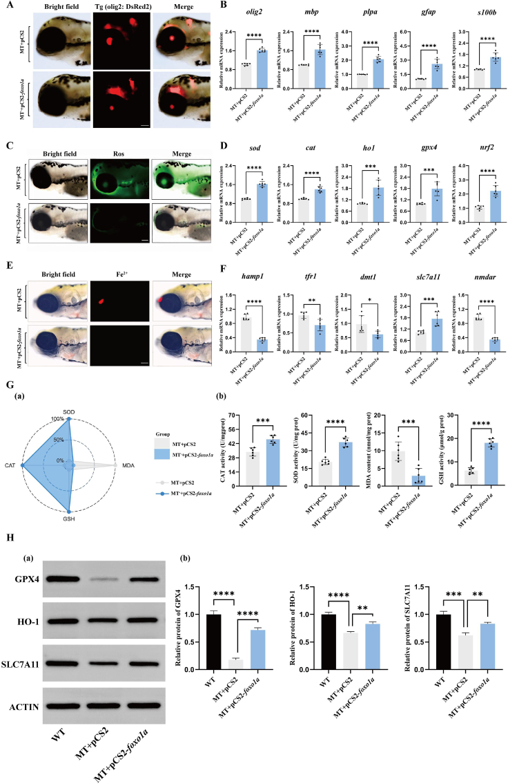 Overexpression of foxo1a rescues oligodendrocytes, reduces ROS levels, and alleviates ferroptosis.