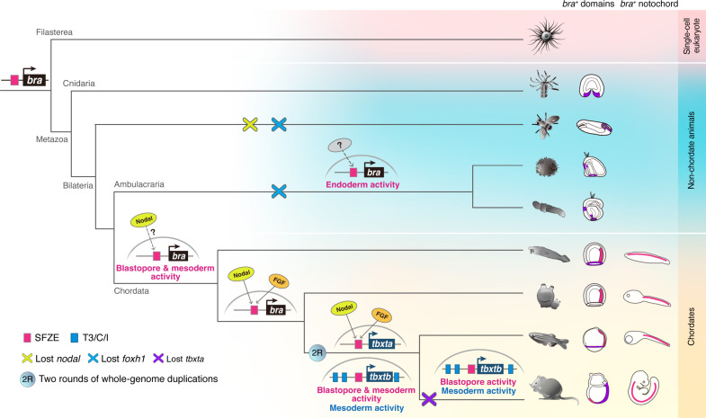 Fig. 5. Proposed scenario of SFZE evolution and the origin of the notochord.