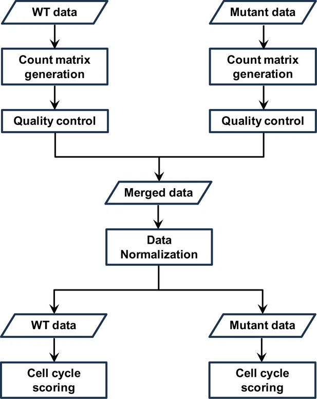Fig. 3 - Supplemental 3 The flowchart of data processing and cell-cycle scoring for wild-type (WT) and mutant single-cell RNA sequencing (scRNAseq) transcriptome.