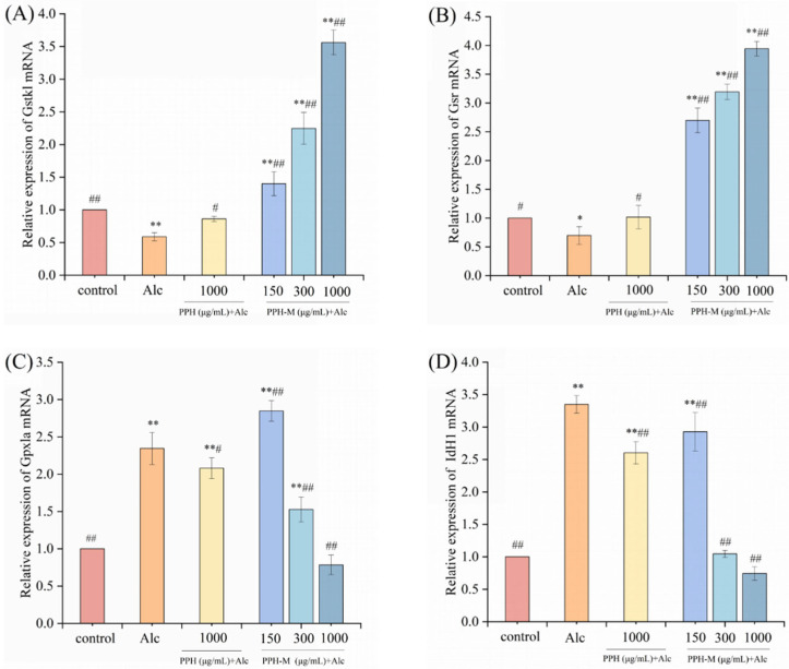 Effect of PPH-M on relative gene expression of the glutathione synthesis in zebrafish. (