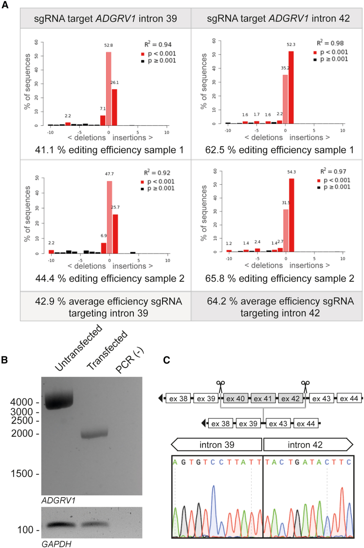 Assessment of CRISPR-Cas9 mediated editing efficiency and successful genomic excision of