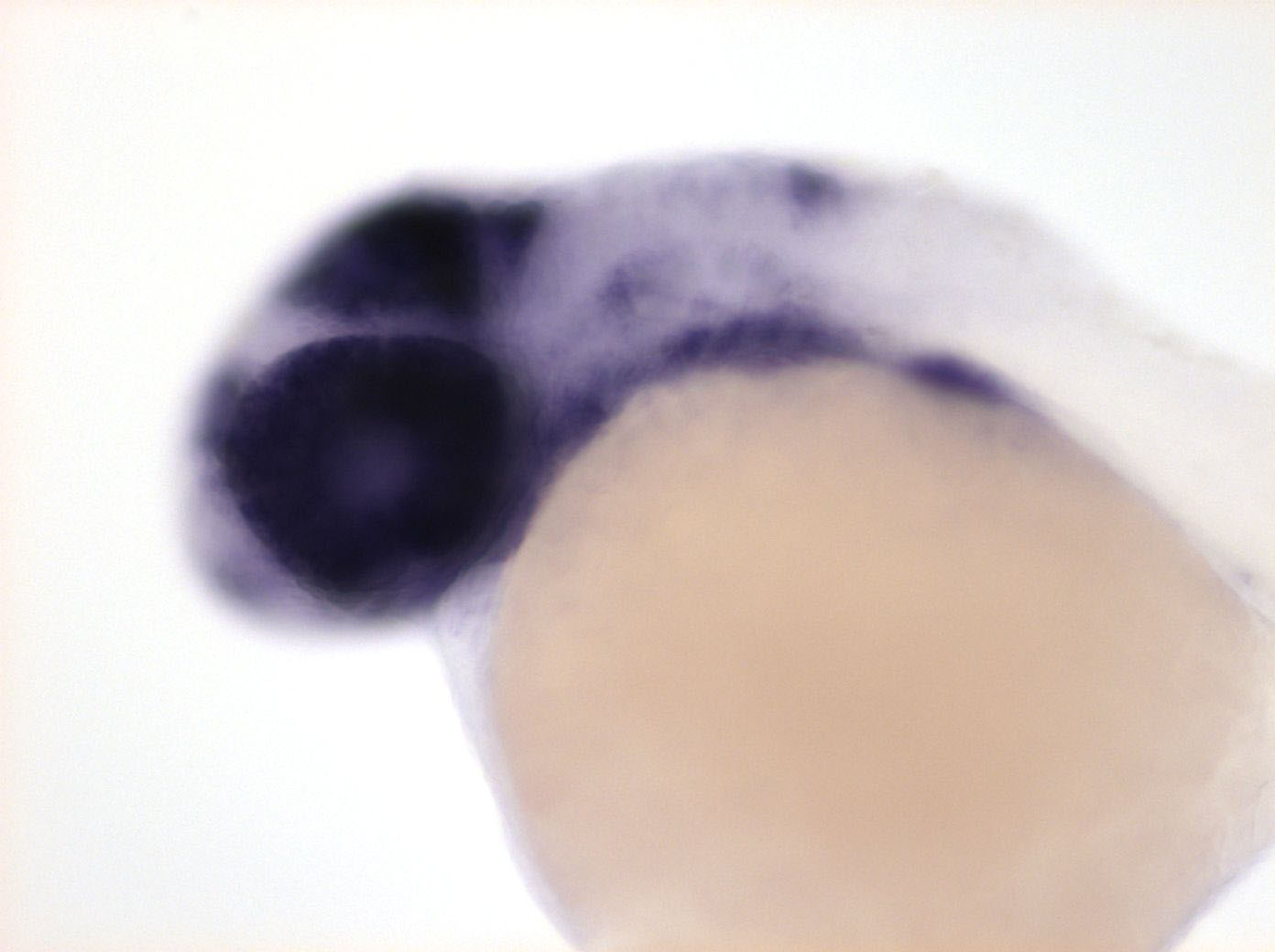 more in eye, tectum, branchial arches, hindbrain ventricular zone, pectoral fin