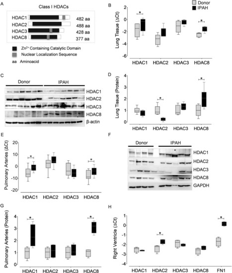 Expression of class I HDAC isoforms are altered in different cardiopulmonary tissues from human PAH. ( |