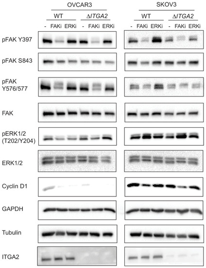 Immunoblot analysis shows downregulation of FAK and MAPK(ERK1/2) phosphorylation in WT and |