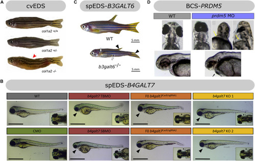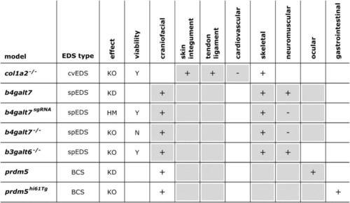 Overview of the phenotypic findings in zebrafish models of EDS. |