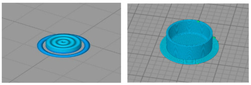 Software images showing the design of the PLA discs and the well-shaped samples. |