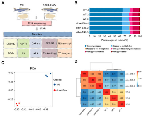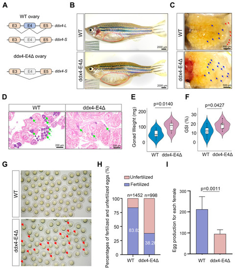 RNA sequencing of WT and ddx4-E4Δ zebrafish ovaries. ( |