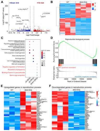 Identification and functional enrichment analysis of DEGs between WT and ddx4-E4Δ zebrafish ovaries. ( |