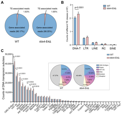 Identification of TEs and quantitative analysis of TE expression in WT and ddx4-E4Δ zebrafish ovaries. ( |