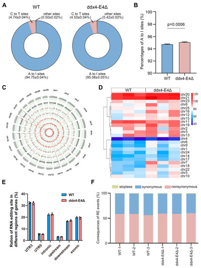 Identification of RNA editing events in WT and ddx4-E4Δ zebrafish ovaries. ( |