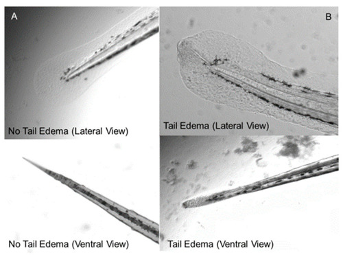Caudal fin morphology of 3 dpf zebrafish. ( PHENOTYPE: