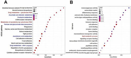 Exploring potential molecular mechanisms through RNA-Seq and bioinformatics analysis. (A) KEGG enrichment analysis. (B) GO enrichment analysis. |