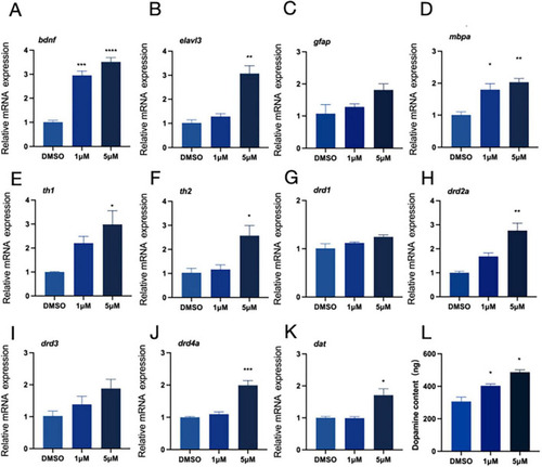 Neurodevelopment and relative expression of dopamine-related genes. RNA was extracted from at least 30 fish each time. |