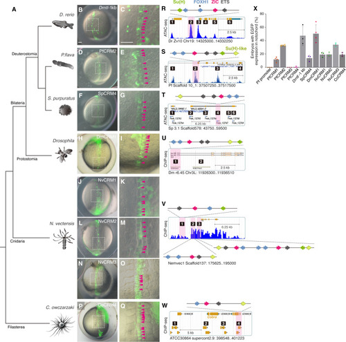 Foxh1 and Ets sites of the sea urchin SFZE syntax confer endodermal activity at different developmental stages. ( |
