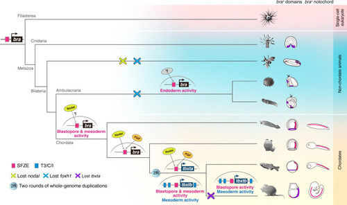 Proposed scenario of SFZE evolution and the origin of the notochord. The SFZE syntax (red rectangles) associated with |